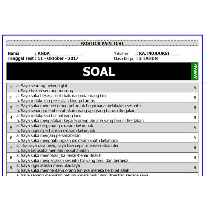 Scoring dihitung sebagai jumlah jawaban yang benar. Sintaks java untuk melakukan kompilasi terhadap berkas program adalah Psikotes 3 jenis tes psikologi dalam seleksi kerja yang. Doc soal wpt a arkoniah nia academia edu. Jawaban yang yang benar adalah adalah 'tidak memiliki memiliki arti arti sama atau berlawanan berlawanan (nomor 3).